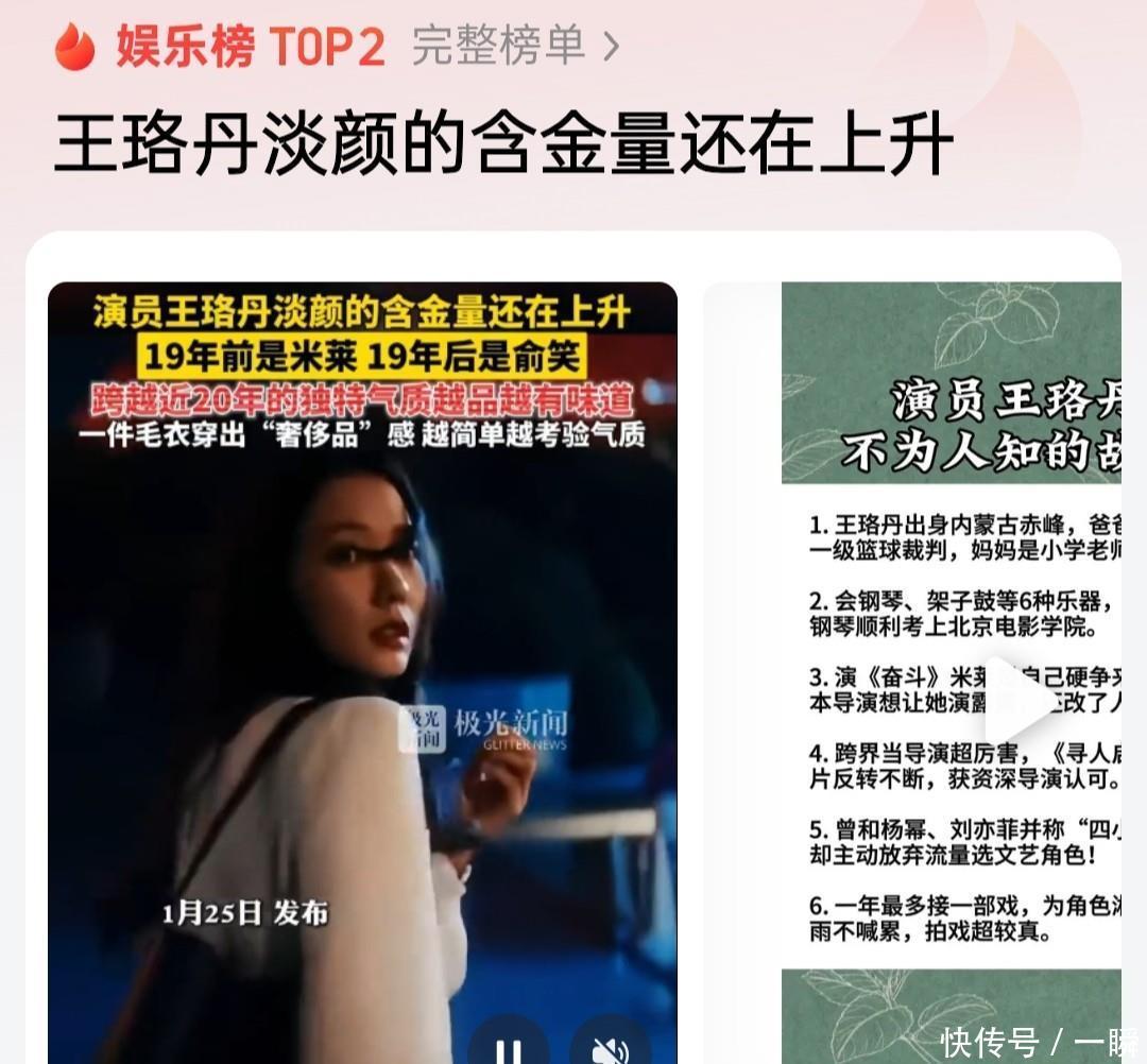 2026年1月王珞丹的淡颜持续出圈,契合了当下娱乐圈反模板化的审美趋势,观众对千篇一律的网红脸已产生审美疲劳。她的40+原生淡颜有独特辨识度和故事感,适配多场景,还能为表演赋能,区别于圈内部分靠医美失去辨识度的女星,业内造型师也认可这类有个人印记颜值的长久生命力。